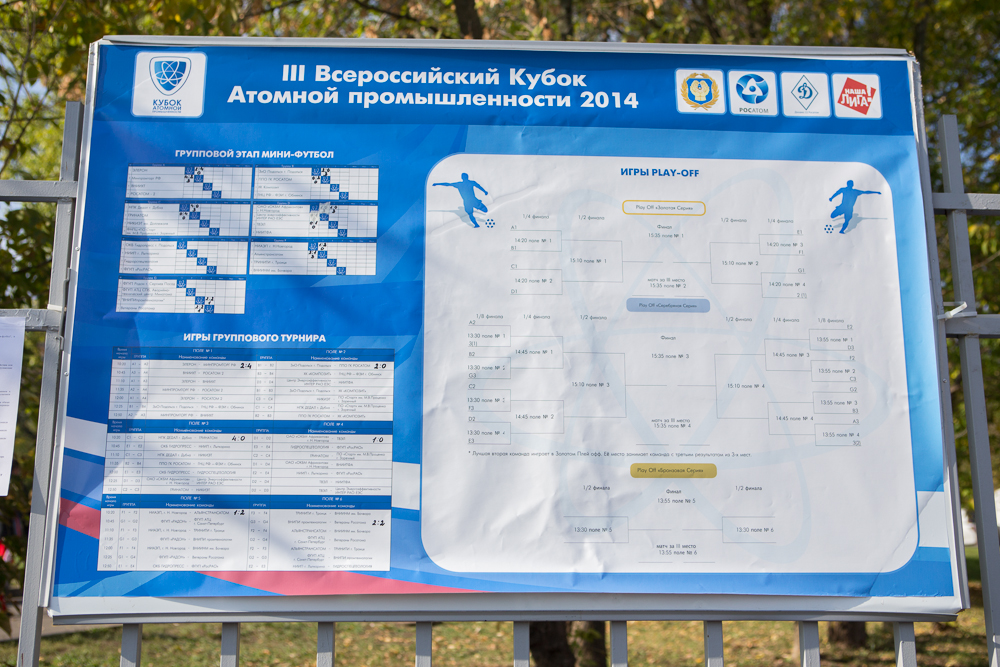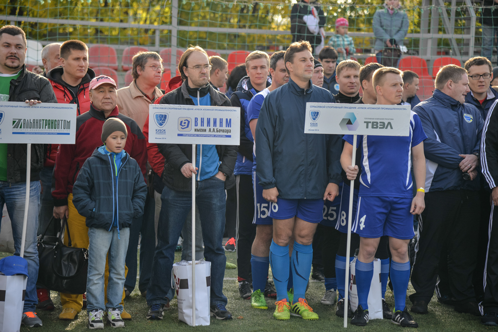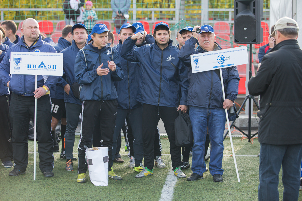 Более чем 30 трудовых коллективов, в том числе не только из Москвы, но и из Подмосковья, Санкт-Петербурга, Нижнего Новгорода и других регионов. Семь видов спорта. Исконно русские: гиревой спорт, перетягивание каната. Советское наследие — нормы ГТО. Ну и соревнования с общемировой славой: настольный теннис, лазерный тир и дартс. Особняком же и красной линией праздника стал масштабный турнир по мини-футболу. Голосом турнира стал комментатор ВГТРК, автор материалов еженедельника «Футбол» и ведущий программ на крупнейших радиостанциях Москвы Александр Неценко. Все 8 часов он оповещал собравшихся обо всем происходящем на 7 спортивных площадках. «Мне очень нравится, что вместо того, чтобы отсыпаться и приходить в себя после безумных вечеринок, которые имеют место на выходных, ребята играют в футбол. Я безумно рад, что нахожусь на этом мероприятие и вижу огромное количество целеустремленных молодых людей. И очень здорово, что такие соревнования набирают вес. Они становятся традиционным, а значит, у команд появляются старые счеты между собой. И самое главное, что расширяется количество участников, — отметил Александр Неценко. — И если в каждой компании будет проходить что-то подобное, то ее сотрудники станут более здоровыми и сплоченными. Ведь именно такие соревнования делают из просто работающих вместе людей настоящий коллектив». Первым по времени как раз стартовал турнир по футболу. Футболисты своим боевым духом и настроем только на победу сразу задали тон всему происходящему. Их друзья-сослуживцы, которые готовились представлять свои предприятия на других площадках, шли туда уже преисполненные воодушевлением и хорошей спортивной злостью. Секрет атмосферы на турнире попытался раскрыть игрок команды Минпромторг Эмиль Анисимов: «Столько народу сегодня. Столько команд. Они все разные. Скажу честно, это просто праздник для любителей футбола. Я много играл в Бизнес-Лиге, но здесь другая атмосфера. Если там ты понимаешь, что это долгий, многомесячный турнир, то здесь это действительно праздник. Все закончится за один день. И совершенно другой настрой на каждую игру. Более боевой. Но и ответственность повышается, конечно, многократно». Примерно часам к 12 уже вся академия имени Черенкова была наполнена спортом. Соревнования шли повсюду. Там — прыгали, там — стреляли, а тут — толкали гирю, а посередине всего этого великолепия играли в футбол. Турнир по спорту номер один ожидаемо привлек самую большую зрительскую аудиторию. Почти все незанятые сотрудники атомной промышленности наблюдали за баталиями на зеленых прямоугольниках. Лишь два события могли отвлечь их от этого. Во-первых, выступление обворожительных девушек из танцевальной шоу-группы BAGIRA. А во-вторых, турнир по перетягиванию каната, где сражались по шесть самых крепких представителей предприятий. Но при всей зрелищности этого вида программы за первое место битва ожесточенной не получилась. Команды НИАЭП выиграла абсолютно все схватки и по праву первенствовала. Главный секрет этой победы раскрылся во время награждения победителей в гиревом спорте. И да, все ступеньки пьедестала заняли представители НИАЭП. Другие же секреты успеха коллектива нам приоткрыл один из творцов этого триумфа Дмитрий Миньчин: «Залогом нашей столь безальтернативной победы стал опыт. Мы сюда прие