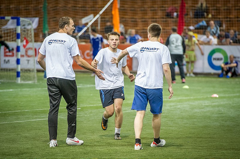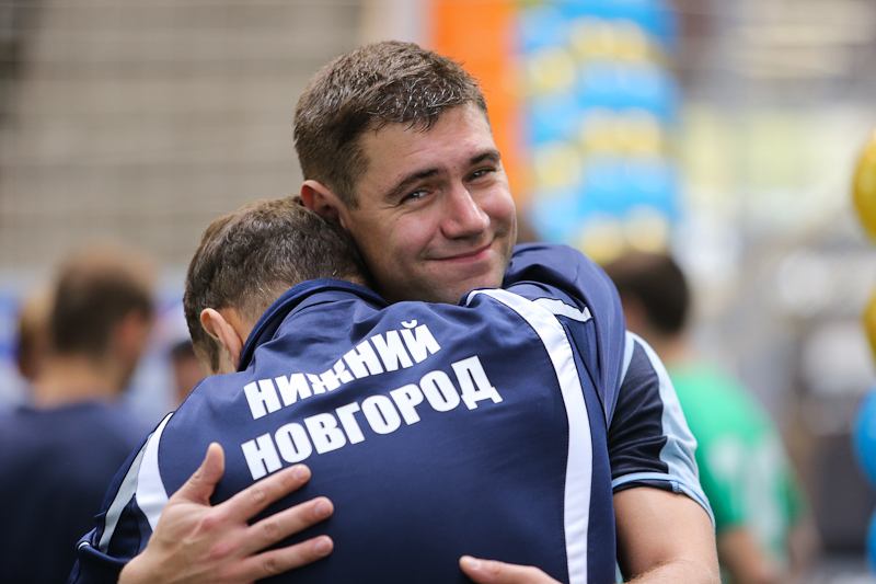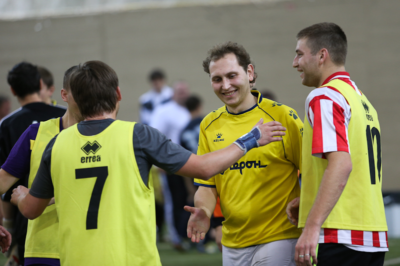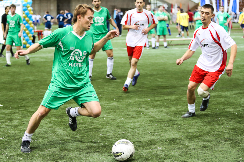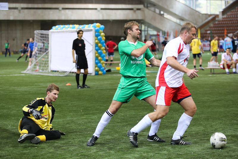 Матч между «Минпромторгом» и «Центром Энергоэффективности» и вправду получился зрелищным и боевым. Последние, поведя в счете с двукратным преимуществом, слегка расслабились и получили в свои ворота три безответных мяча. Правда, происходившее на поле мало напоминало поединок фаворитов, что и доказали последующие матчи в группе. Ни те, ни другие пробиться в золотой плей-офф не сумели и пропустили вперед «НИИС им. Седакова» и «ФГУП НИИП» из Лыткарино. В других группах тон задавали две команды из Нижнего Новгорода, которые приехали в район Ленинградского проспекта еще за два часа до старта соревнований. На вопрос о поставленных перед собой задачах спортсмены в один голос отвечали, что прибыли в Москву только за победой. И до поры, до времени все шло по их сценарию.