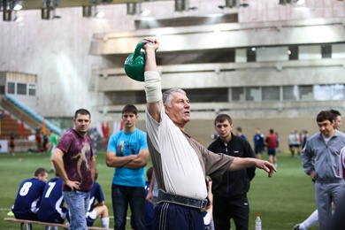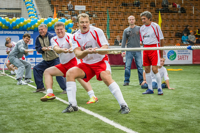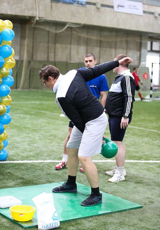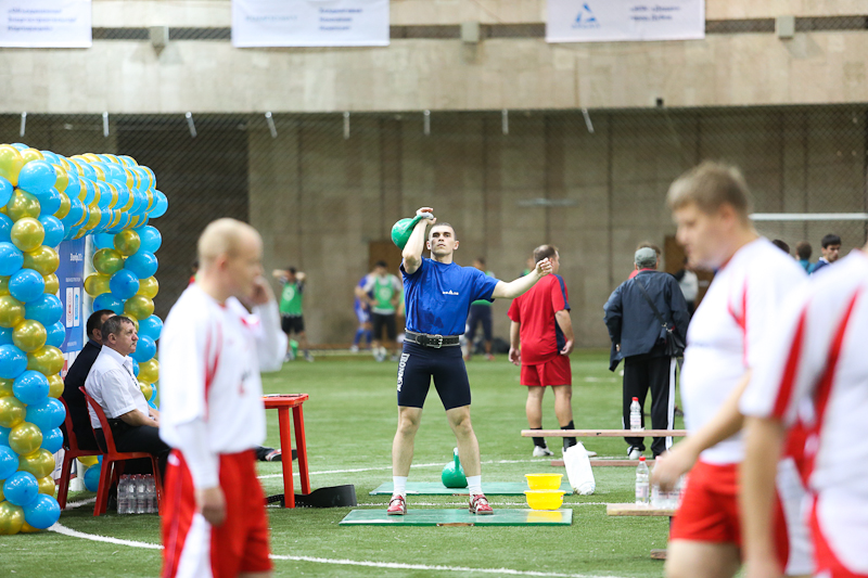 Легко одолев своих оппонентов по группам, нижегородские коллективы принялись доминировать и в других видах спорта. Организаторы подготовили соревнования по гиревому спорту и перетягиванию каната. В первом особо преуспели спортсмены из НИАЭП, которые привезли с собой целую команду тяжелоатлетов. Один из них — мастер спорта международного класса по гиревому спорту Андрей Разживин, смог поднять 24-килограммовый снаряд над головой 90 (!) раз и одержал убедительную победу. Поддержали его и партнеры по команде, занявшие оставшиеся призовые места. А вот другая экзотическая для футбольного турнира дисциплина — перетягивание каната, на время заставила большинство участников мероприятия вообще забыть, что они собрались сегодня не ради плетеной веревки. Соревнования вызвали дичайший интерес публики, спортсмены бились изо всех сил, но поделать что-либо с нижегородскими богатырями не смог никто. Отметим лишь, что особую волю к победе проявили лыткаринские футболисты, достойно сражавшиеся против заведомо более сильной команды гиревиков. В «канатном» финале победу в волжском дерби праздновали ребята из НИАЭП, в двух раундах «перетянувшие» своих земляков из ОКБМ.